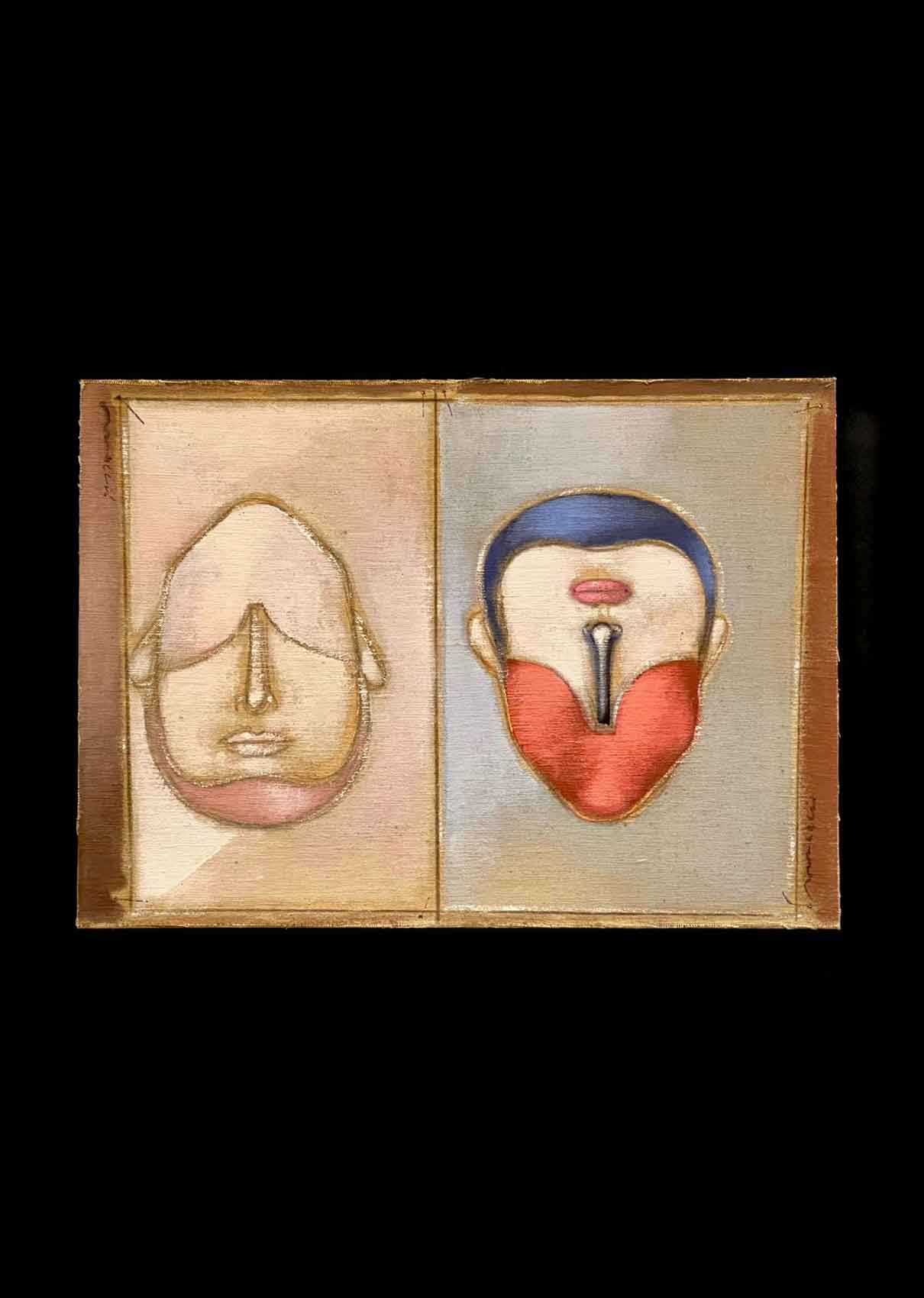 La presente obra de Rómulo Macció desplaza el rostro humano hacia un régimen de descomposición donde la identidad se vuelve inestable y vulnerada.